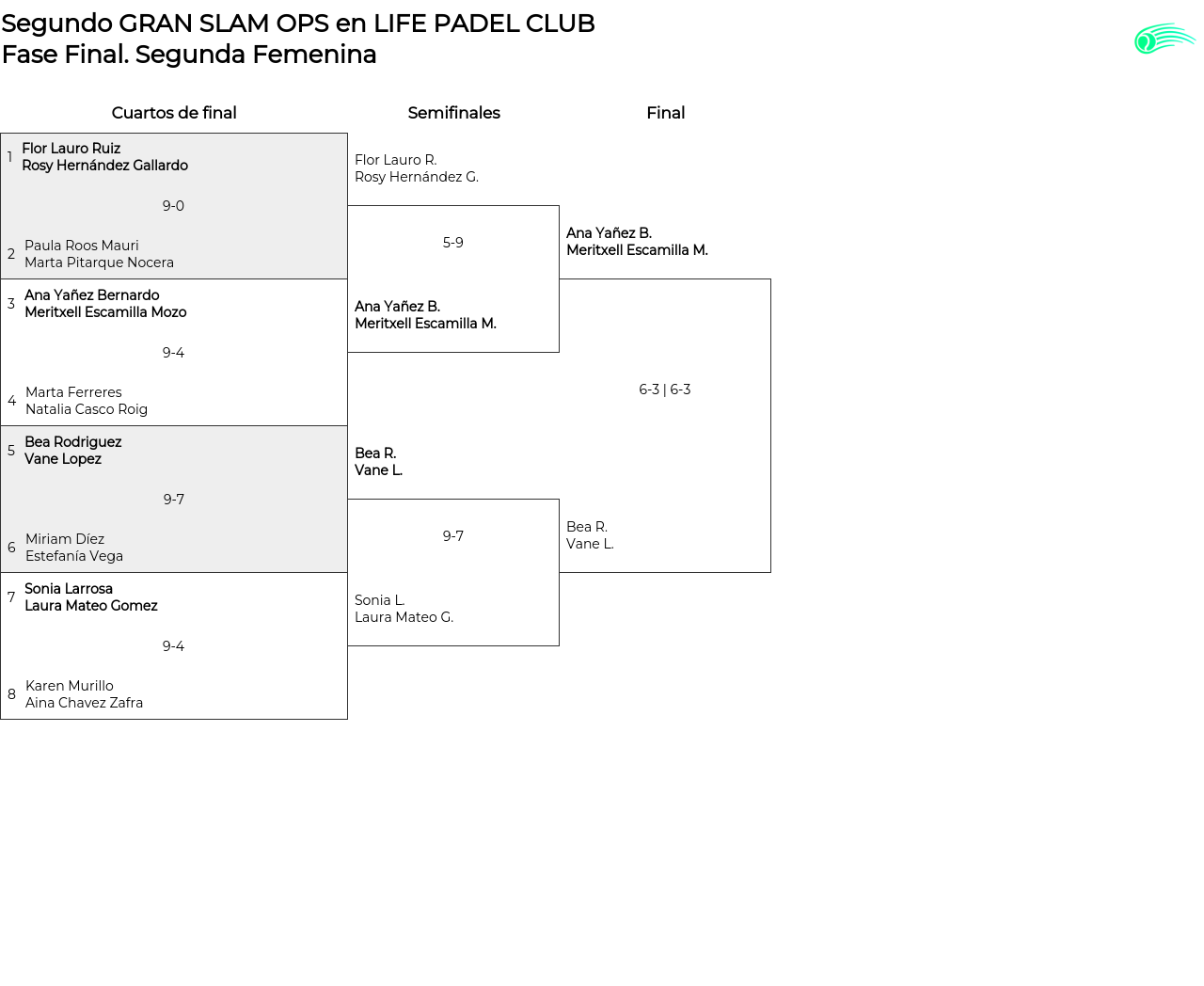 Segunda Femenina main bracket